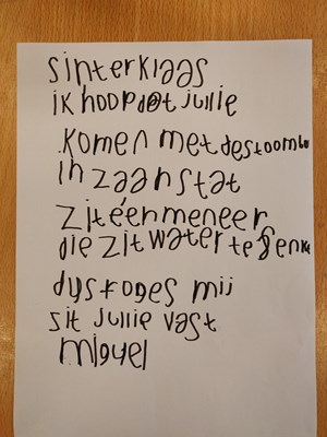 Het hele Sinterklaas gebeuren leeft al sterk. Kinderen gaan spontaan een brief schrijven...